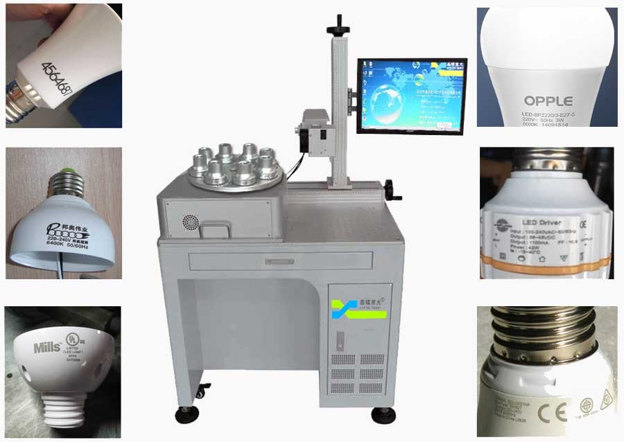 本设备适用于节能灯、LED灯等灯座的打标加工。通过八工位结构,有效缩短上下料等待时间,配合XY轴实现精准调焦,广泛适配多种规格的灯座型节能灯。该机型也可称为自动旋转八工位激光打标机。